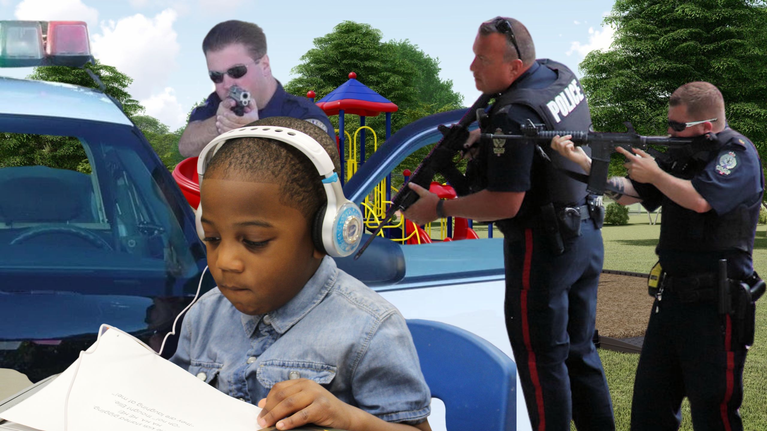 Perceiving the threat, officers drew their weapons and demanded the child to drop the copy of “The ABCs of Black History” from behind their vehicles. But the child pretended not to hear them through her headphones while his back was turned.